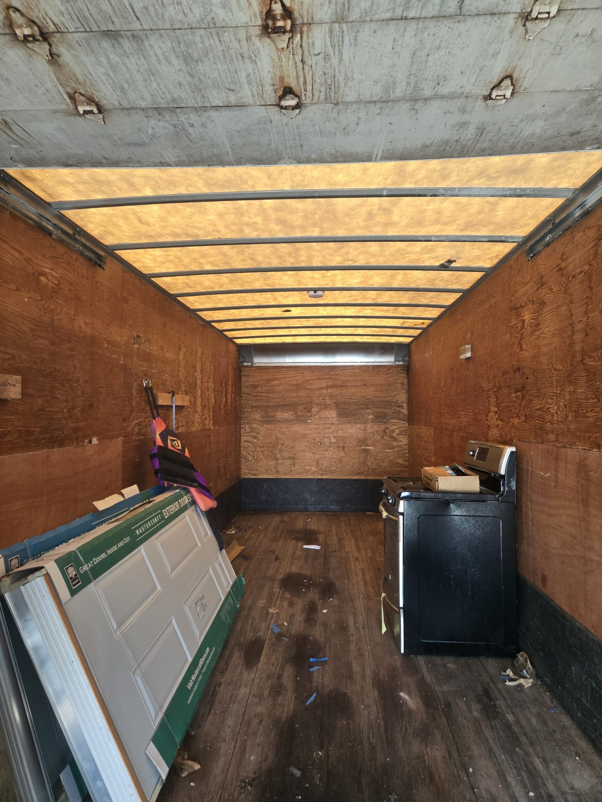 24 ft Box Truck Body, roll door, translucent roof.